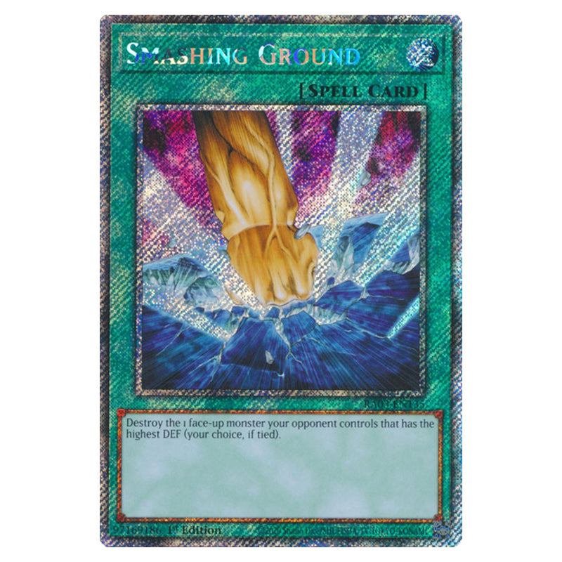 Smashing Ground is a Platinum Secret Rare, from the Yugioh set Quarter Century Bonanza (RA03-EN135)