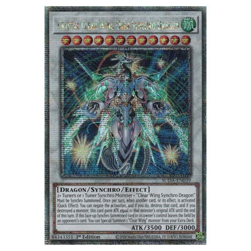 Crystal Clear Wing Over Synchro Dragon is a Quarter Century Secret Rare, Effect Synchro Monster from the Yugioh set Supreme Darkness (SUDA-EN039a)