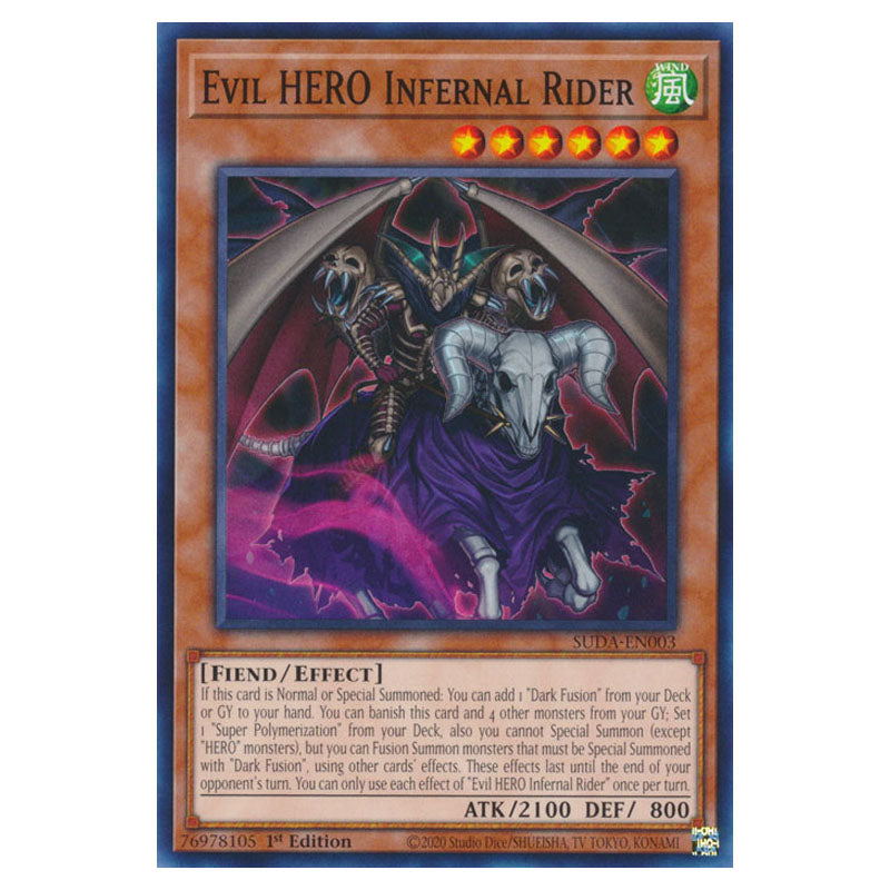 Evil HERO Infernal Rider is a Common, Effect Monster from the Yugioh set Supreme Darkness (SUDA-EN003)