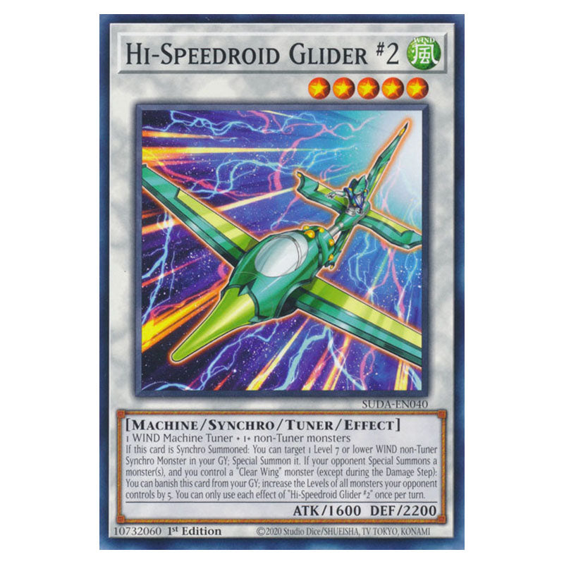Hi-Speedroid Glider 2 is a Common, Effect Tuner Synchro Monster from the Yugioh set Supreme Darkness (SUDA-EN040)
