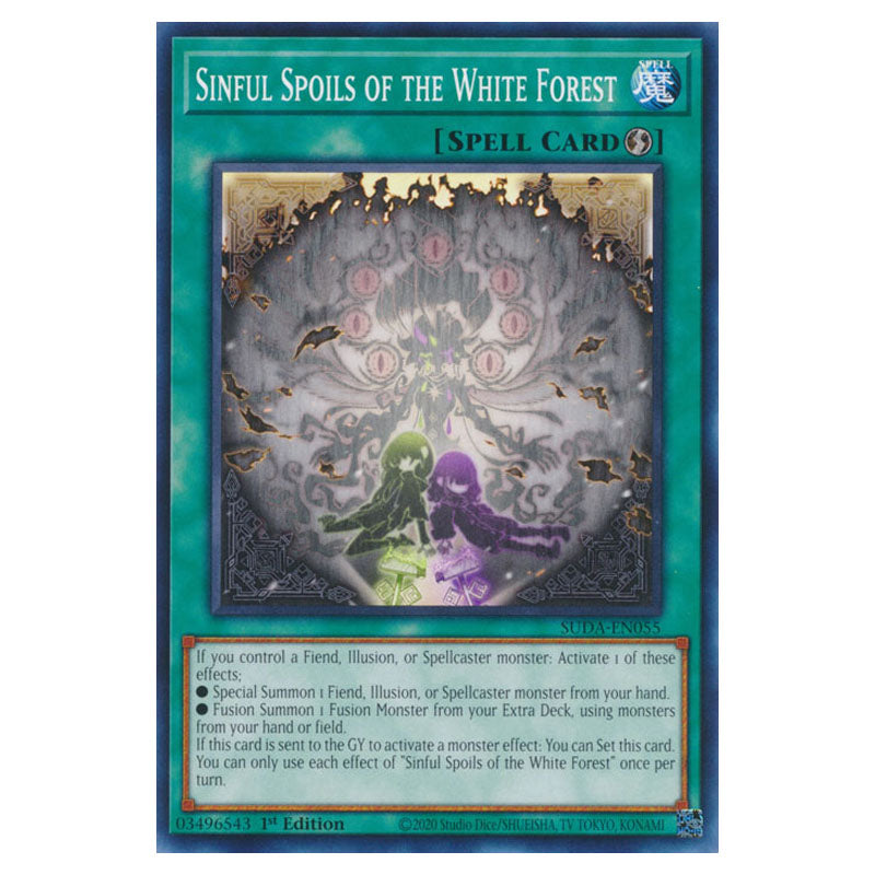 Sinful Spoils of the White Forest is a Common, Quick-Play Spell from the Yugioh set Supreme Darkness (SUDA-EN055)