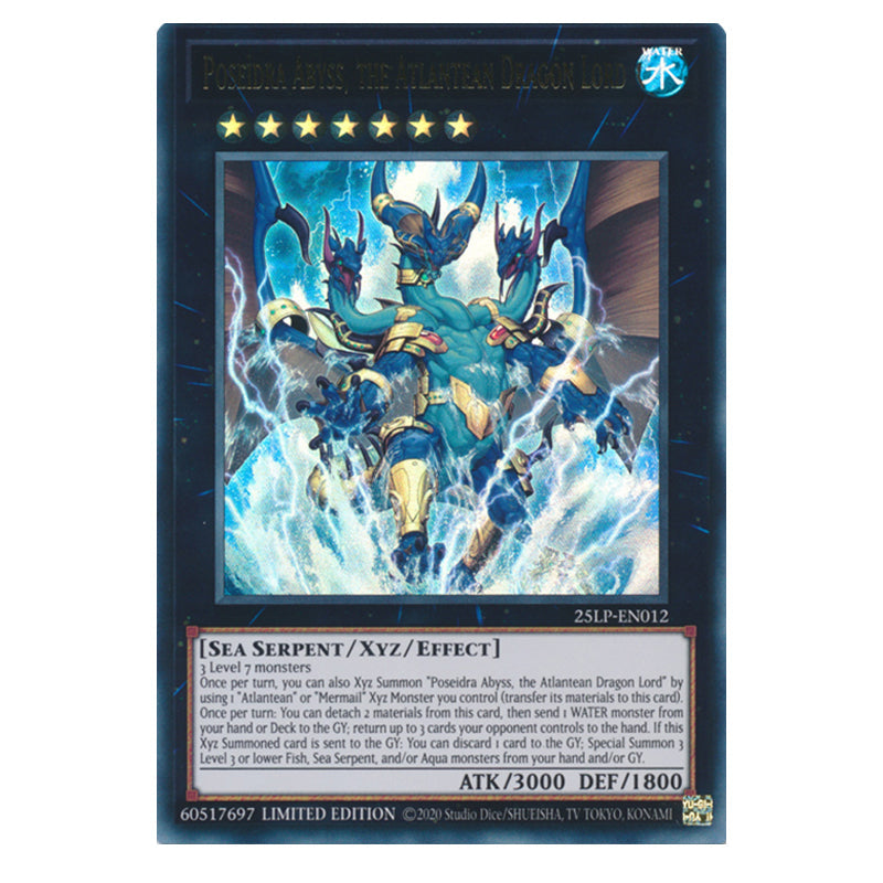 Poseidra Abyss, the Atlantean Dragon Lord is a Ultra Rare, Effect Xyz Monster from the Yugioh set World Championship 2025 - Limited Pack (25LP-EN012a)