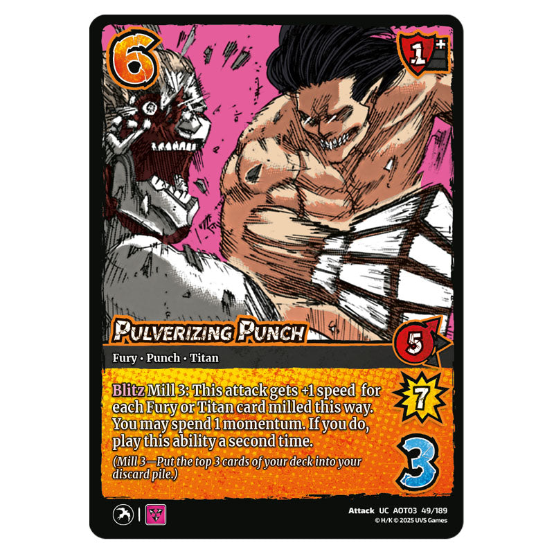 Pulverizing Punch is a Normal card from the Attack on Titan set Apocalypse UC 03 049/189