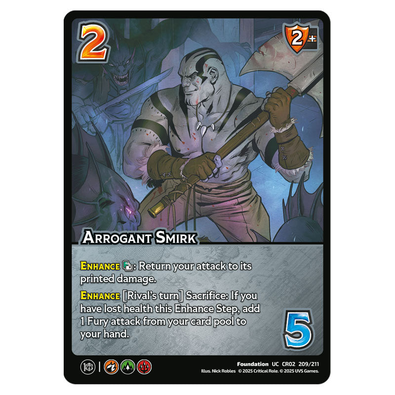 Arrogant Smirk is a Uncommon Foundation card from the Universus set Crtical Role - Heroes of Exandria
