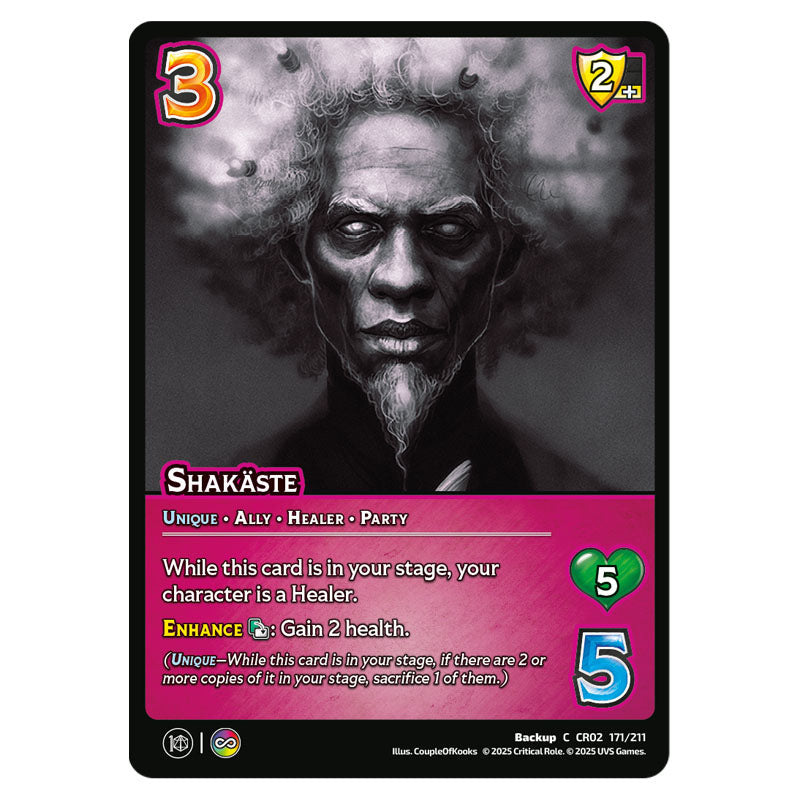 Shakaste is a Common Backup card from the Universus set Crtical Role - Heroes of Exandria