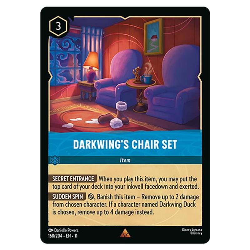 Darkwing's Chair Set 168/204 is a Lorcana card from the expansion Winterspell. This is the Foil version of the card.