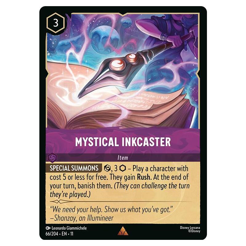 Mystical Inkcaster 066/204 is a Lorcana card from the expansion Winterspell. This is the Foil version of the card.