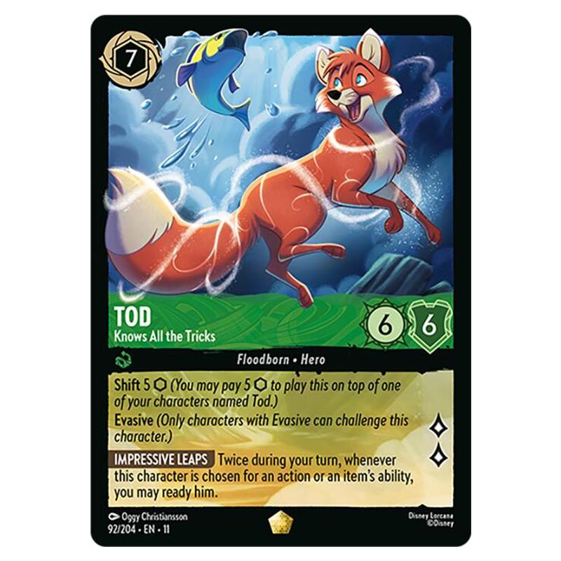 Tod - Knows All the Tricks 092/204 is a Lorcana card from the expansion Winterspell. This is the Foil version of the card.