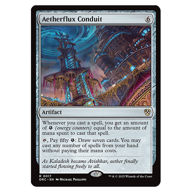 Aetherflux Conduit is a Rare, Artifact card from the Magic The Gathering set Aetherdrift Commander (MTGSC-DRC-0017)