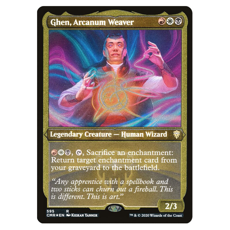 Ghen, Arcanum Weaver is a Rare, Legendary Creature - Human Wizard card from the Magic The Gathering set Commander Legends (MTGSC-CMR-595)