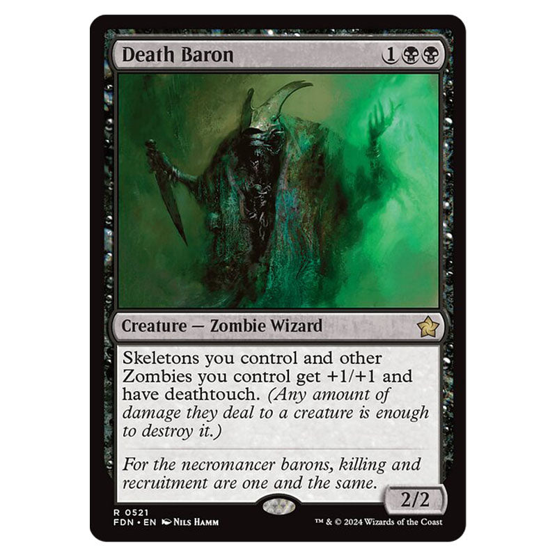 Death Baron is a Rare, Creature - Zombie Wizard card from the Magic The Gathering set Foundations (MTGSC-FDN-0521)