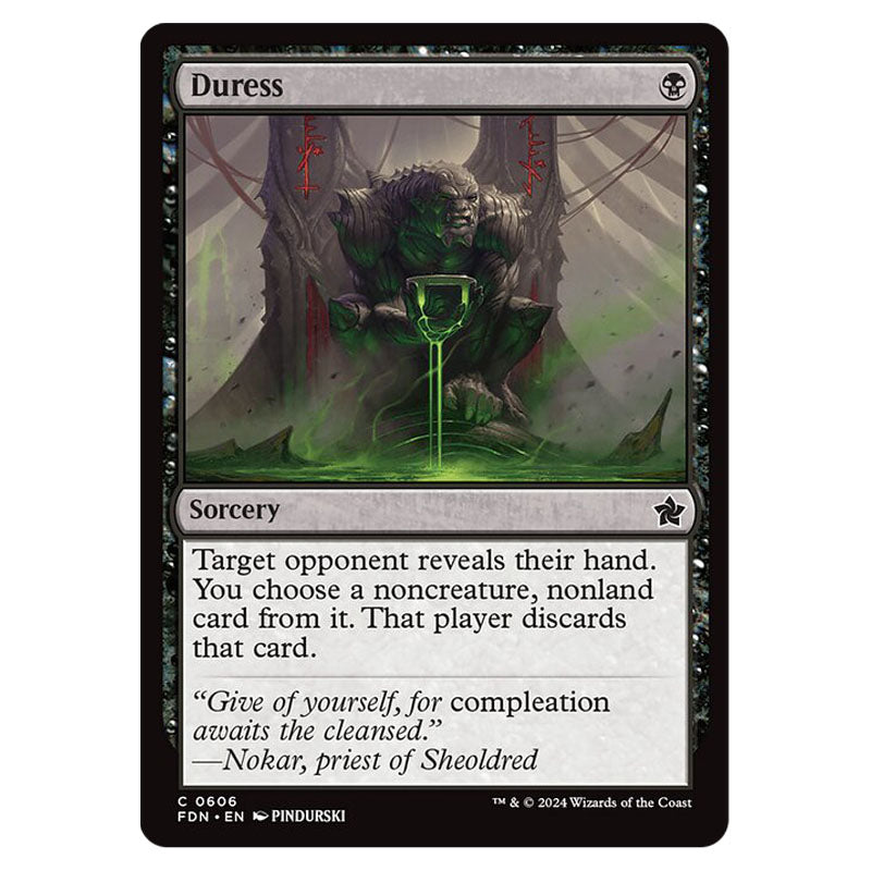 Duress is a Common, Sorcery card from the Magic The Gathering set Foundations (MTGSC-FDN-0606)