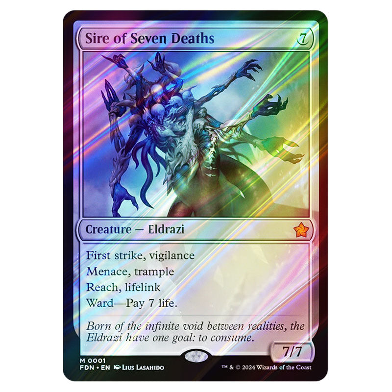 Sire of Seven Deaths is a Mythic, Creature - Eldrazi card from the Magic The Gathering set Foundations (MTGSC-FDN-0001)