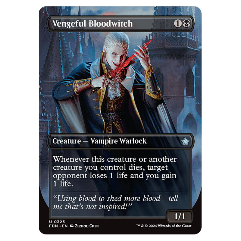 Vengeful Bloodwitch is a Uncommon, Creature - Vampire Warlock card from the Magic The Gathering set Foundations (MTGSC-FDN-0325)