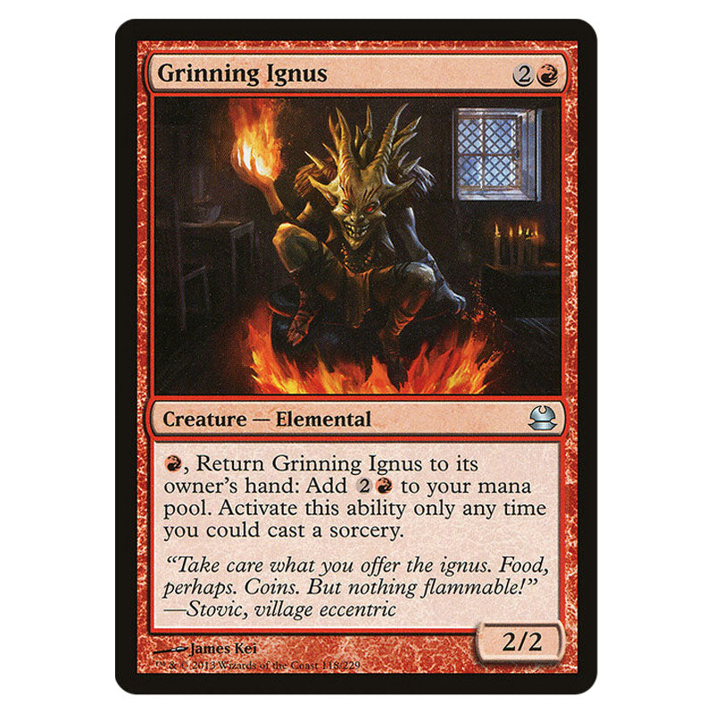 Grinning Ignus is a Uncommon, Creature - Elemental card from the Magic The Gathering set Modern Masters (MMA) (MTGSC-MMA-118)