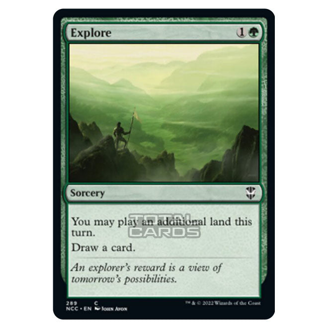 Explore is a Common, Sorcery card from the Magic The Gathering set Streets of New Capenna (MTG-NCC-289)