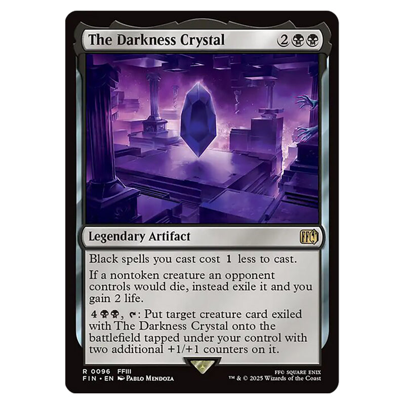The Darkness Crystal is a Rare, Legendary Artifact card from the Magic The Gathering set Universes Beyond - Final Fantasy (MTGSC-FIN-0096)