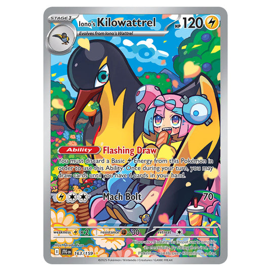 Iono's Kilowattrel is a Lightning type Pokémon card from SV9 - Journey Together (163/159)