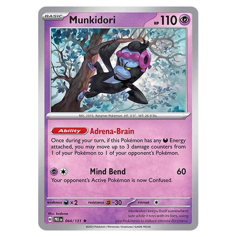 Munkidori is a Rare (Basic) Psychic type Pokémon card from SV8.5 - Prismatic Evolutons (044/131)