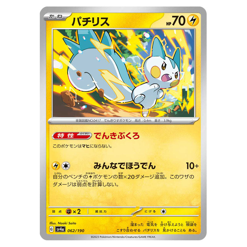 Pachirisu is a Lightning type card from SV4a - Shiny Treasure ex (062/190)
