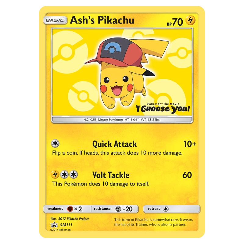Ash's Pikachu is a - (Basic) Lightning type Pokemon card from SM Black Star Promos. (SM111)