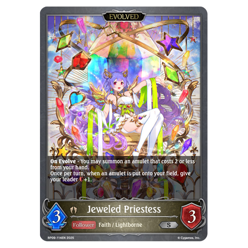 Jeweled Priestess is a Follower / Evolved card from the Shadowverse Evolve set Duet of Dawn and Dusk (BP09-114EN)