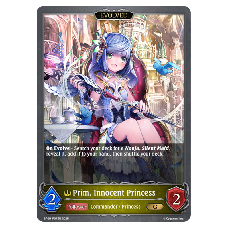 Prim, Innocent Princess is a Follower / Evolved card from the Shadowverse Evolve set Duet of Dawn and Dusk (BP09-P07EN)