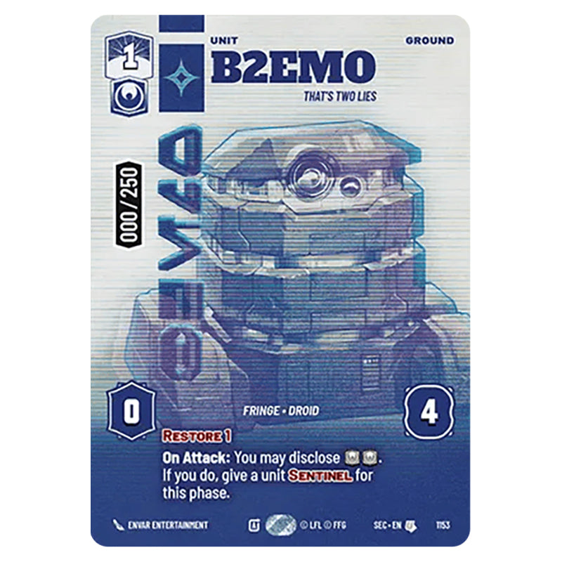 B2EMO That's Two Lies is a Uncommon Prestige Serialized card from the Star Wars Unlimited set Secrets of Power (1153)