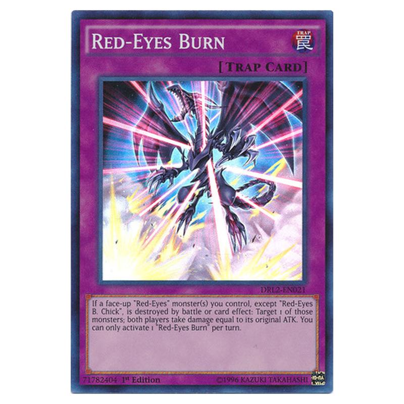 If a face-up "Red-Eyes" monster(s) you control, except "Red-Eyes B. Chick", is destroyed by battle or card effect: Target 1 of those monsters; both players take damage equal to its original ATK. You can only activate 1 "Red-Eyes Burn" per turn.