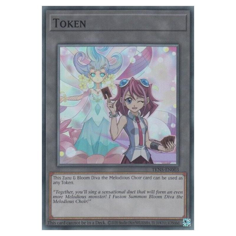 Step into the mystical world of Yu-Gi-Oh! with the Zuzu and Bloom Diva the Melodious Choir Token from Legacy of Destruction. This Super Rare token adds a magical touch to your duels, perfect for summoning and strategy.