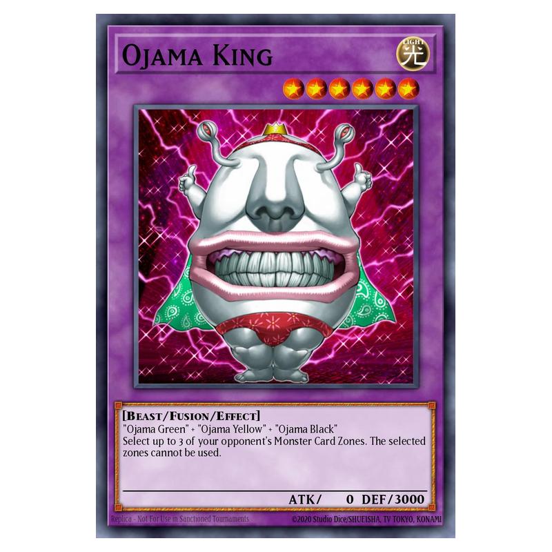 \\"Ojama Green\\" + \\"Ojama Yellow\\" + \\"Ojama Black\\"Select up to 3 of your opponent's Monster Card Zones. The selected zones cannot be used.