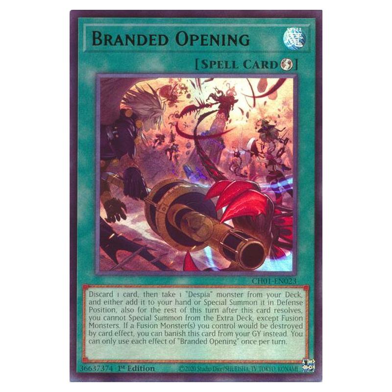 Branded Opening 023 is a Yu-Gi-Oh! card from the expansion The Chronicles Deck - The Fallen & The Virtuous.