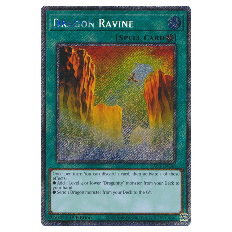 Dragon Ravine is a Platinum Secret Rare, Effect Tuner monster from the Yugioh set Quarter Century Bonanza (RA03-EN248)