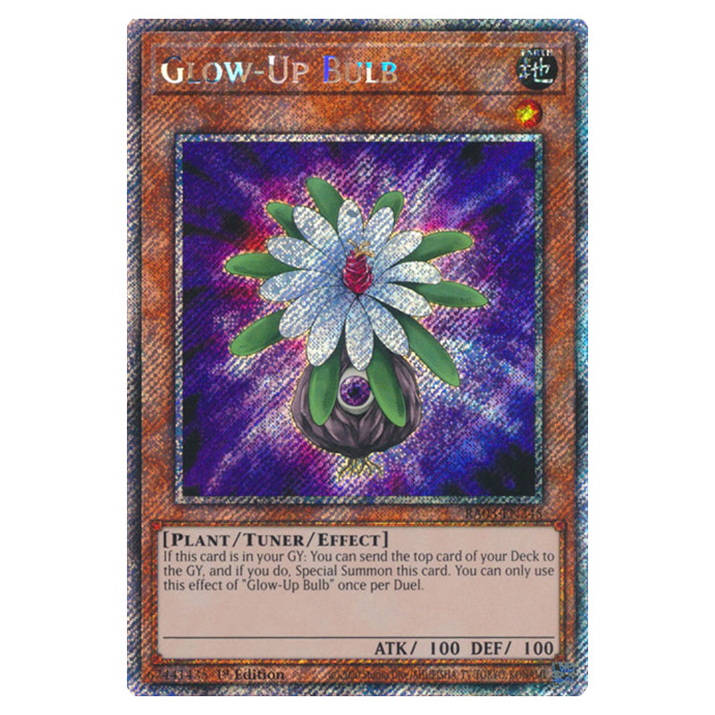 Glow-Up Bulb is a Platinum Secret Rare, Effect Monster from the Yugioh set Quarter Century Bonanza (RA03-EN245)