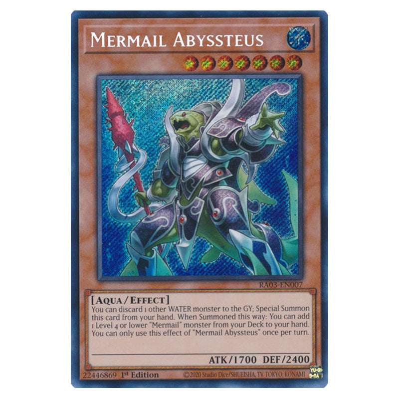 Mermail Abyssteus is a Secret Rare, Effect Link Monster from the Yugioh set Quarter Century Bonanza (RA03-EN007)