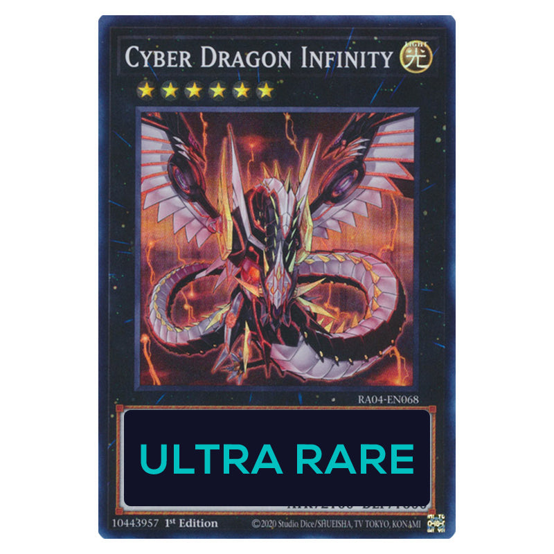 Cyber Dragon Infinity is a Ultra Rare, Effect Xyz Monster from the Yugioh set Quarter Century Stampede (RA04-EN068-UR)