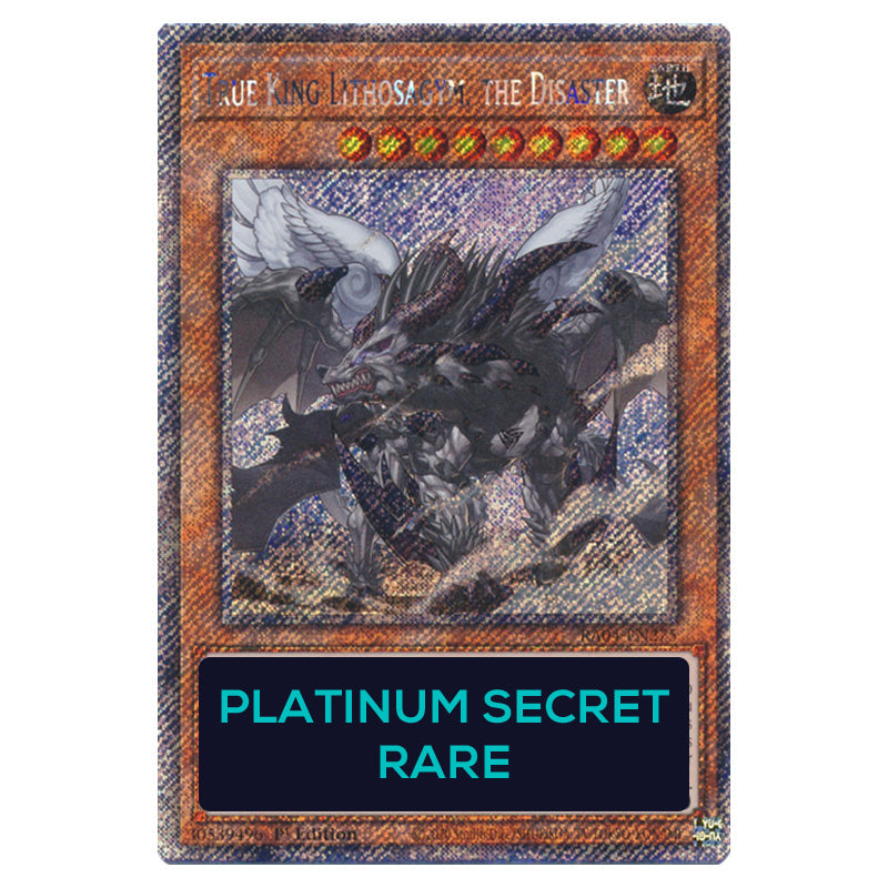 True King Lithosagym, the Disaster is a Platinum Secret Rare, Effect Monster from the Yugioh set Quarter Century Stampede (RA04-EN275-PSR)