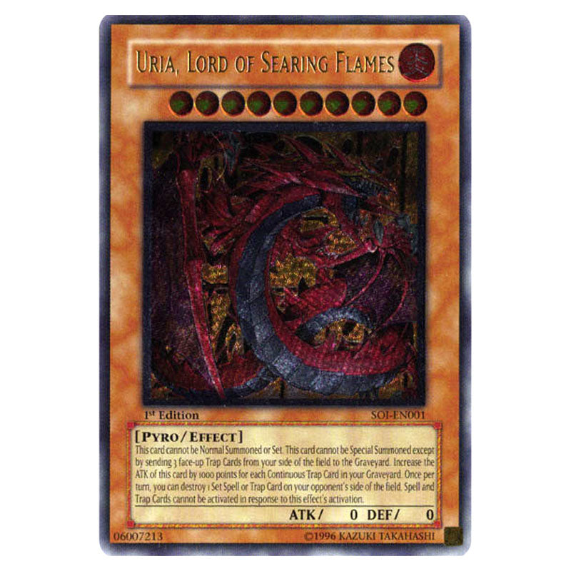Uria, Lord of Searing Flames is a Ultimate Rare, Effect Monster from the Yugioh set Shadow of Infinity (SOI-EN001A)